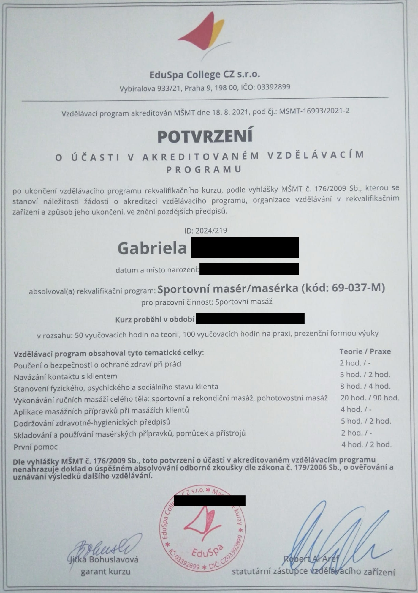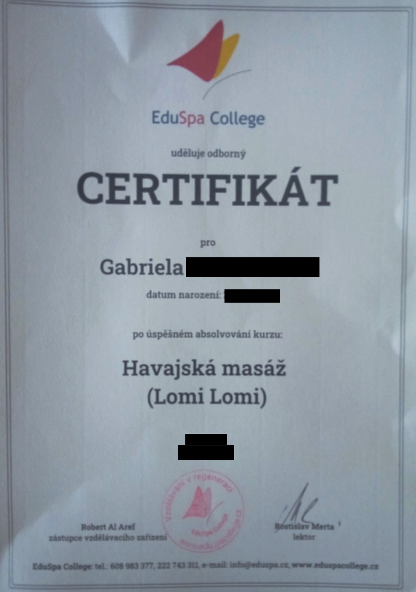 Gabriela je masérka, která tě přivítá v atmosféře klidu a lidské blízkosti. Její přístup je pečující, vnímavý a bezpečný – jemně vede, s jistotou a klidem. Masáž s ní není jen o technice, ale o laskavé přítomnosti, ve které můžeš zapomenout na napětí, uvolnit se a prostě být. Vědomým dotekem otevírá prostor, kde se ztiší hlava a tělo konečně oddechne.