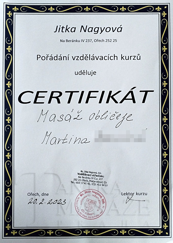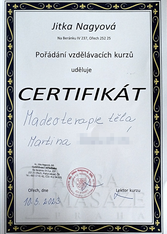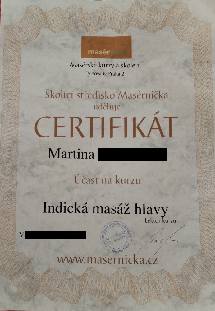 Stále se vzdělávám a rozvíjím, protože masáže jsou pro mě více než jen technika. Absolvovala jsem například tyto výcviky: